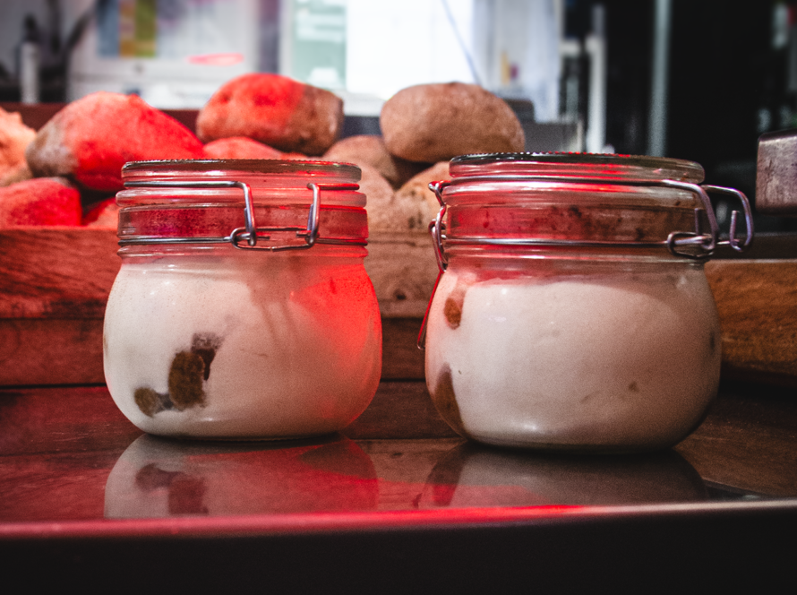 Soupe de kiwi, éclats de grenade, glace mascarpone, meringue, rose des sables, zeste combava