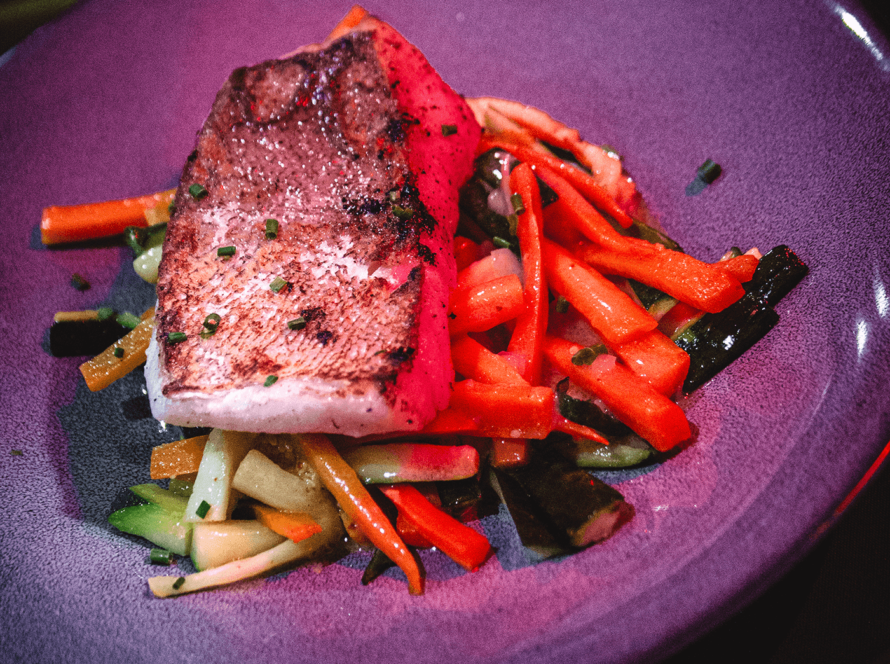 Bisque de crustacés, écrasé de pommes de terre à la schiacciata ou poêlée de légumes